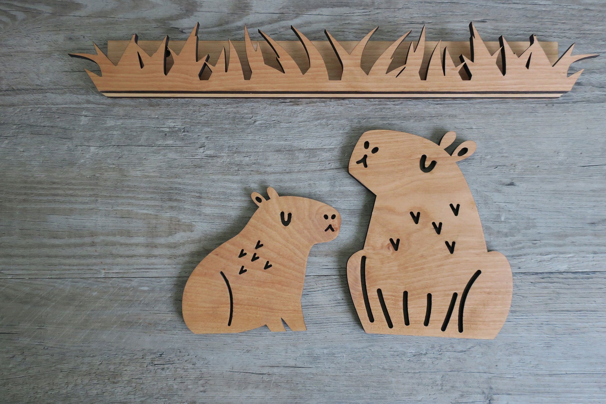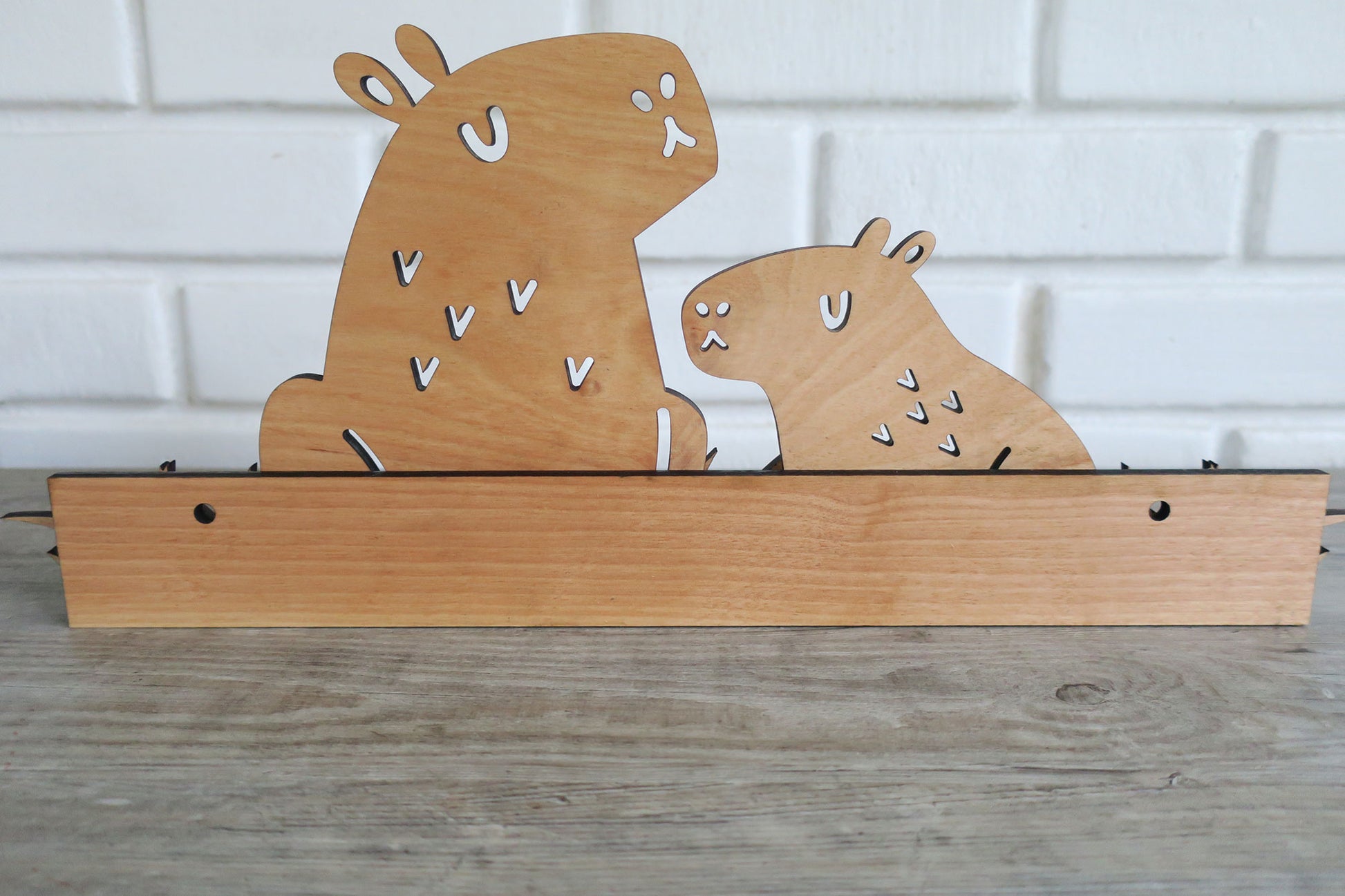 Super cute piece of decor for a hygge themed nursery or toddler's room. Not looking for nursery decor? The Scandinavian styling of these capybaras makes it easy to place in any room of your home with or without kids.
