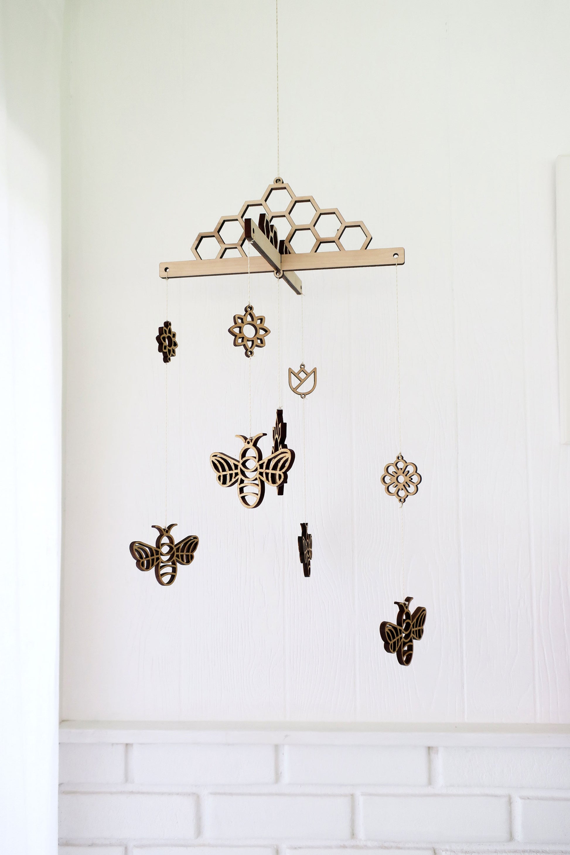 This adorable honeycomb and bee hanging mobile will be the perfect addition to your nursery or child's room. The minimalist design can fit in a variety of styles; garden, honeybee, Scandinavian or modern.