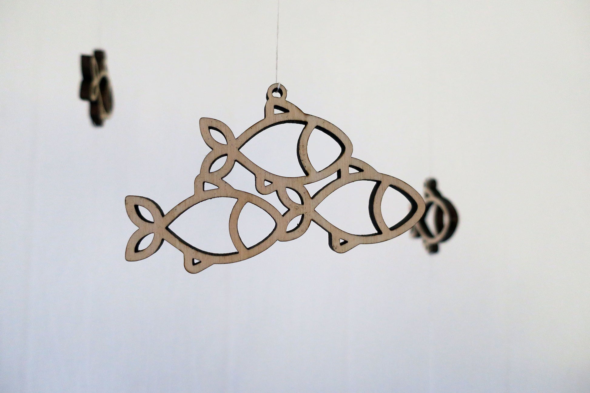 This mobile is crafted from eco-friendly birch or walnut wood and can be easily hung from the metal ring which is included.